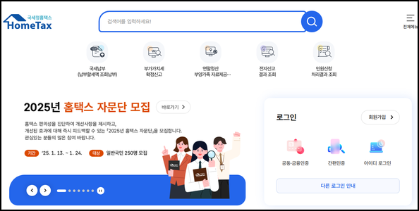 - 국세청 홈택스에 접속합니다.
